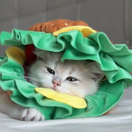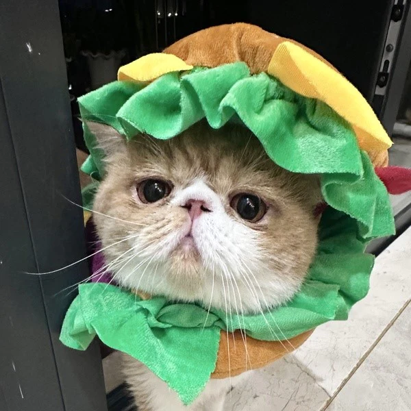 We also have options for a cute bib, and some burger toys for your cat to look cute with and enjoy, along with the burger cone! Now that's an awesome outfit!