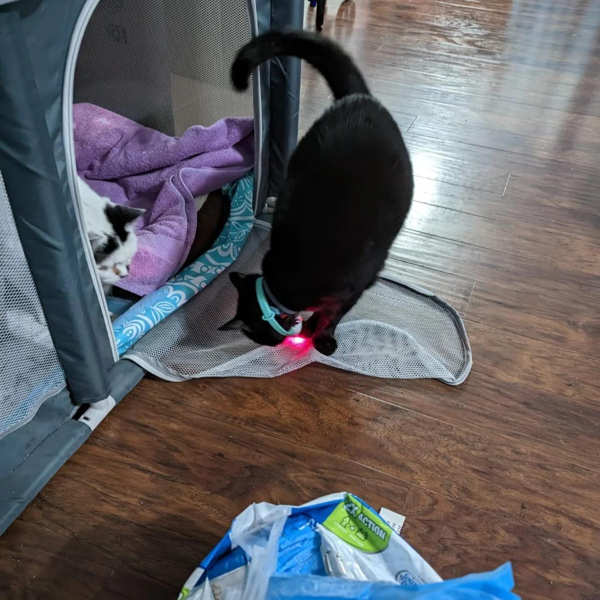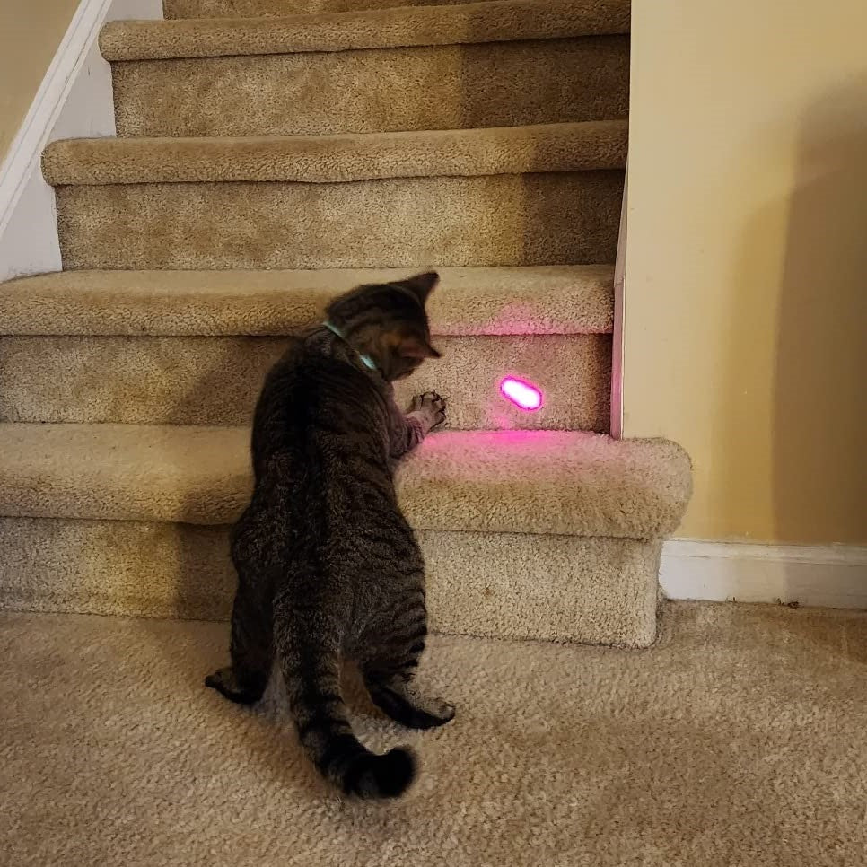 Cats love chasing lasers around, but most of the time you'll be the one holding it for them. With our laser collar, you can sit back and relax while you watch them chase a little red dot around!