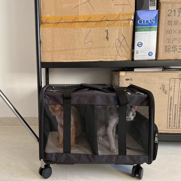 The trolley is easy to handle, both for you and your cat! The mesh all around the luggage makes sure that your cat will be a-okay!