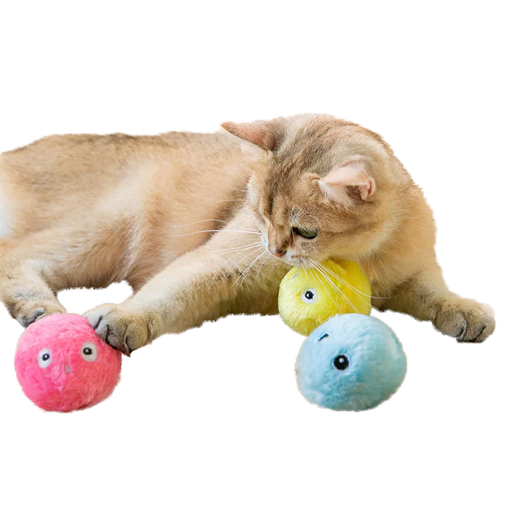 The balls are fluffy, and completely plush to the touch, and comes with bird, cricket, and frog sound, giving your cat a wide variety of preys!