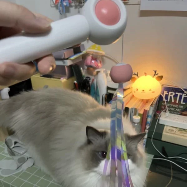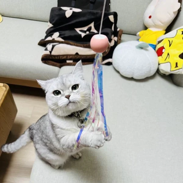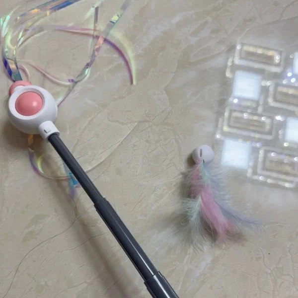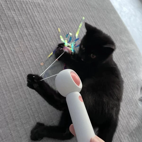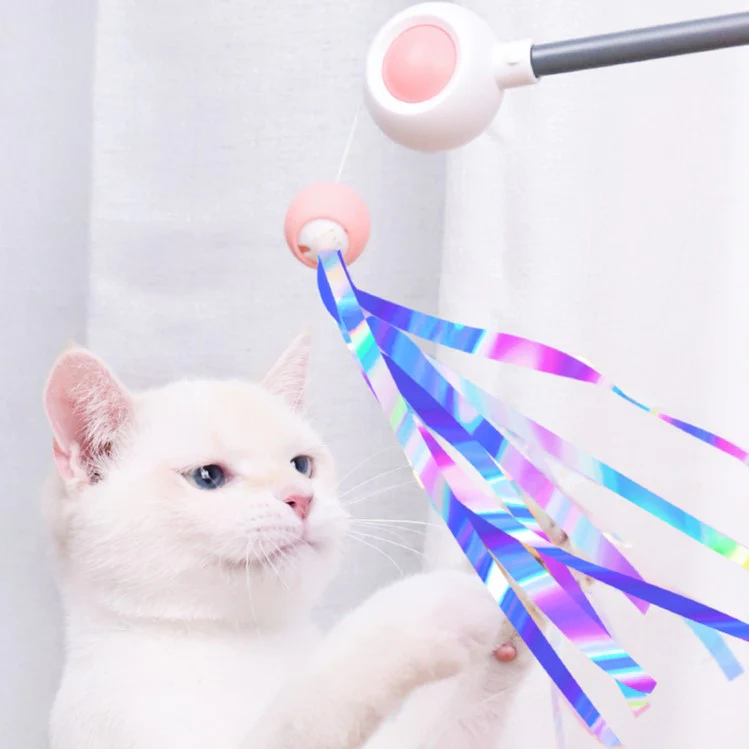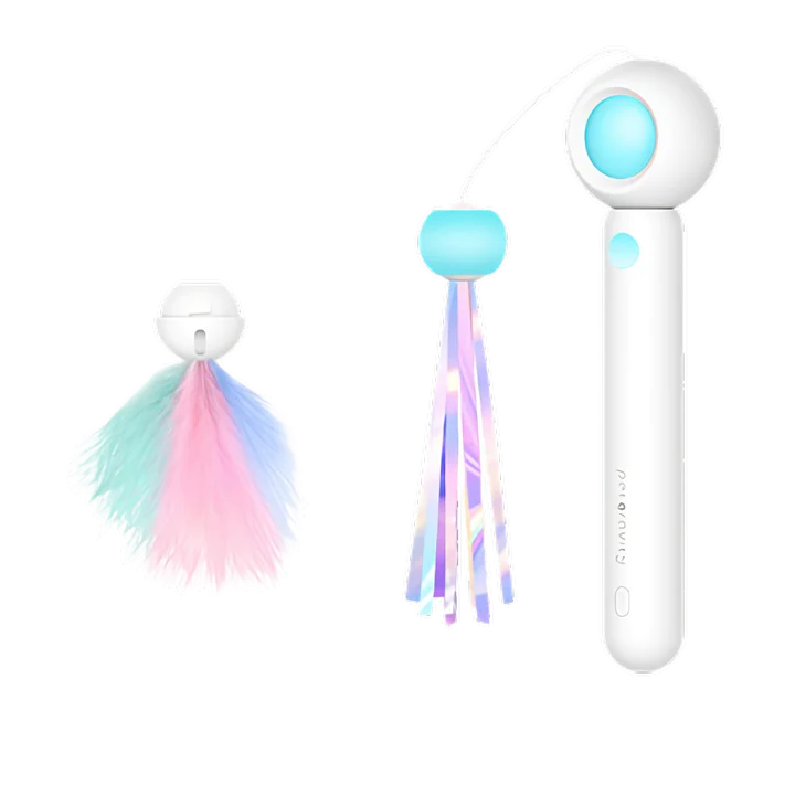 The toy itself comes with two replaceable heads, a feather-type and a streamer-type, both coming in colorful colors for your cat to enjoy!