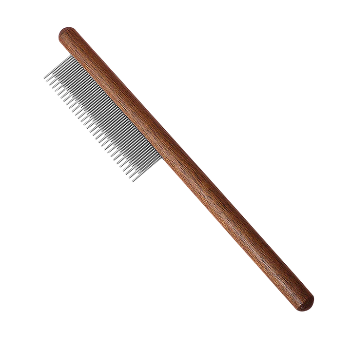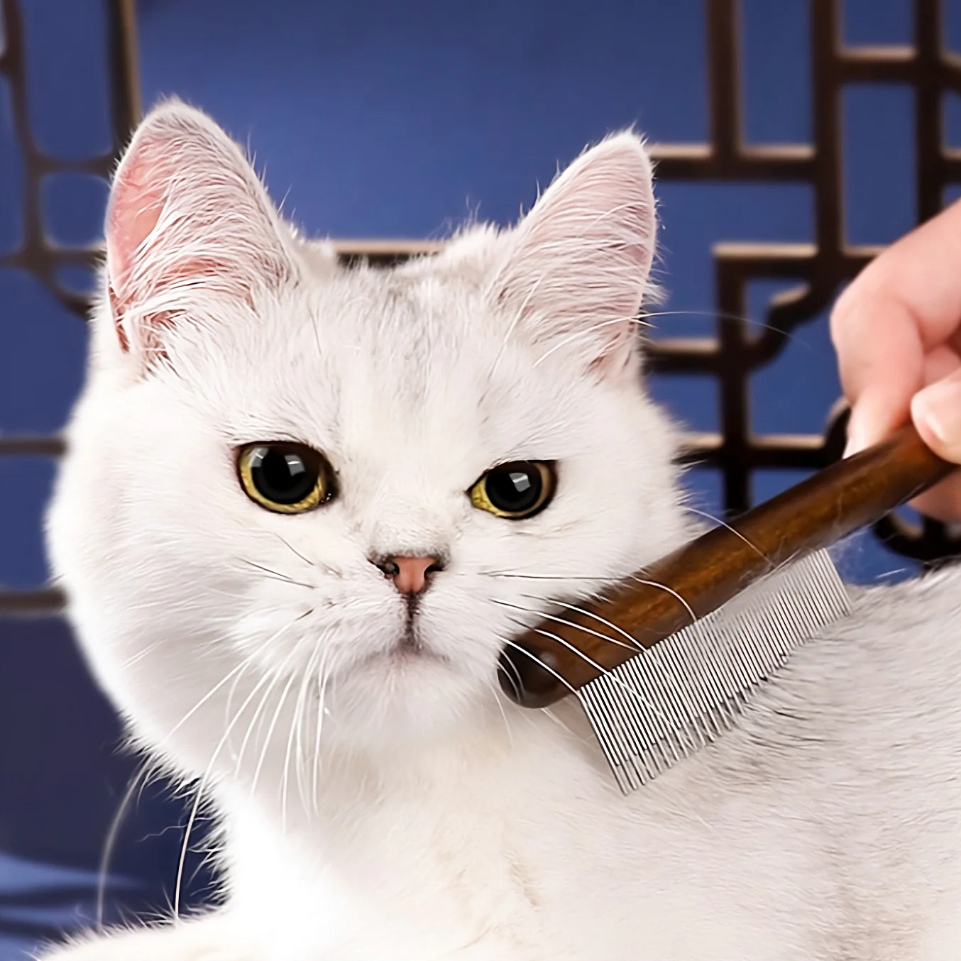 The comb's handle is made of solid wood, making sure that your grip on it is firm and comfy, because a comfy owner grooms a comfy cat!