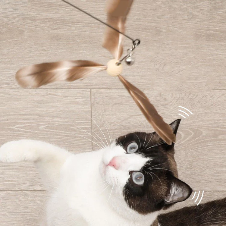 Nothing beats giving your cat the fun of playing with them, and our Feather Teasing Toy aims to please! Let them chase it around while you're seated, or even while you yourself are running! The illusion of a dragonfly buzzing around them will keep them engaged and active, and you can even call them easily with the built-in bell!