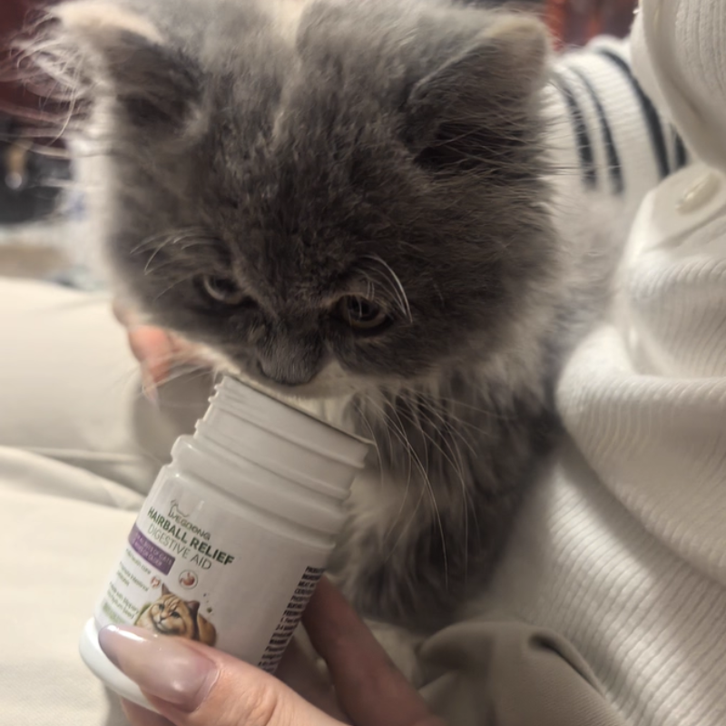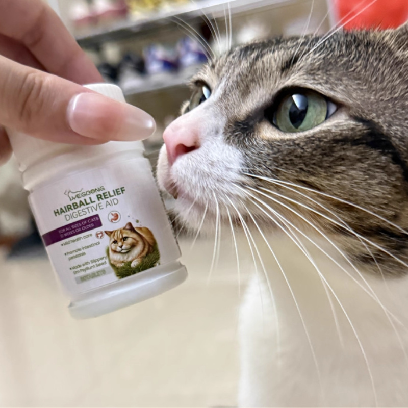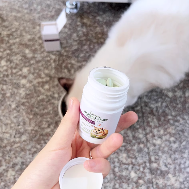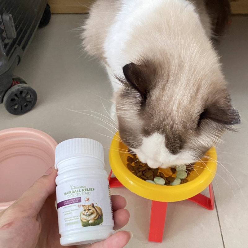 With the high fiber ingredients in our tablets, it helps to move the hair through the digestive tract, eliminate potential hairballs formed in your cat's stomach.