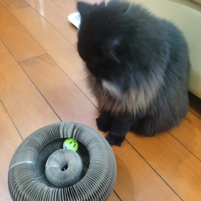 A colorful bell ball is included in the package and can be placed on the track. Once the track unfolds, no matter how your cat plays, the bell ball will not fall out.