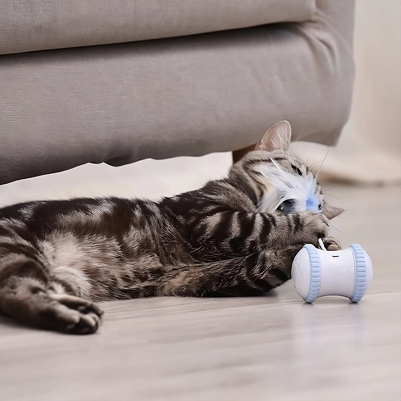 The Race & Chase Toy uses smart-sensor technology that allows it to move and avoid obstacles with ease, including your cat! This won't be an easy to to catch, that's for sure! The shape of the toy is also made to be completely stable, and can keep going even when it's been turned over, so you won't have to reset it every time your cat flips it!