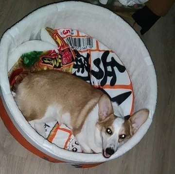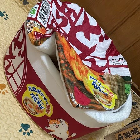 Our instant ramen bowl-shaped pet bed keeps your little buddy cozy in its foamy material— and has a deliciously-cute ramen cushion thrown in too.