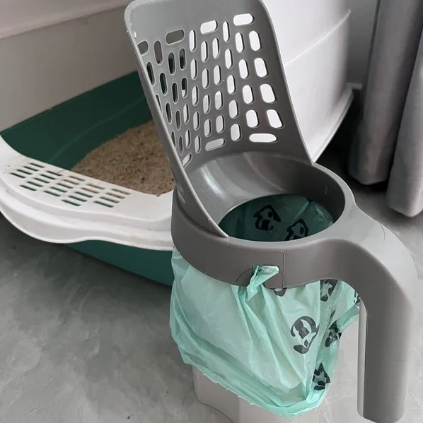 When finished, just detach the scoop from the waste bin, tie the waste bag shut, and throw away.