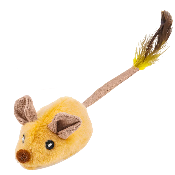 The mouse toy's exterior is made of soft plush, which won't cause any damage to your cat's teeth should they choose to bite it, and it also protects the toy's interior quite well!