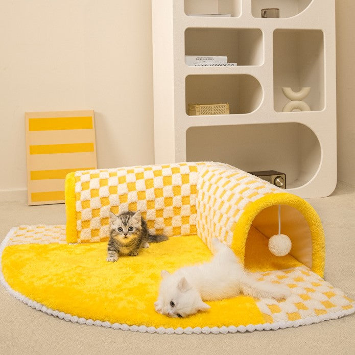 The Tunnel Bed doesn't only have a wide spacious bed area for your cat to sleep in, but it also has an angled tunnel area for their perusal, with balls at both ends that they can play with!